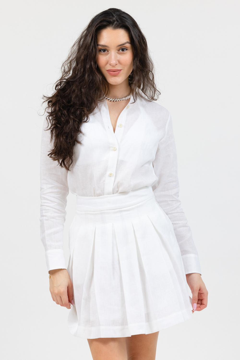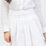 Our Monaco Linen Skirt is pleated to flirty perfection! With a high-waist, zipper back, and pockets, this out-and-about must-have is ready to wear to the beach, farmer's market, or dinner!