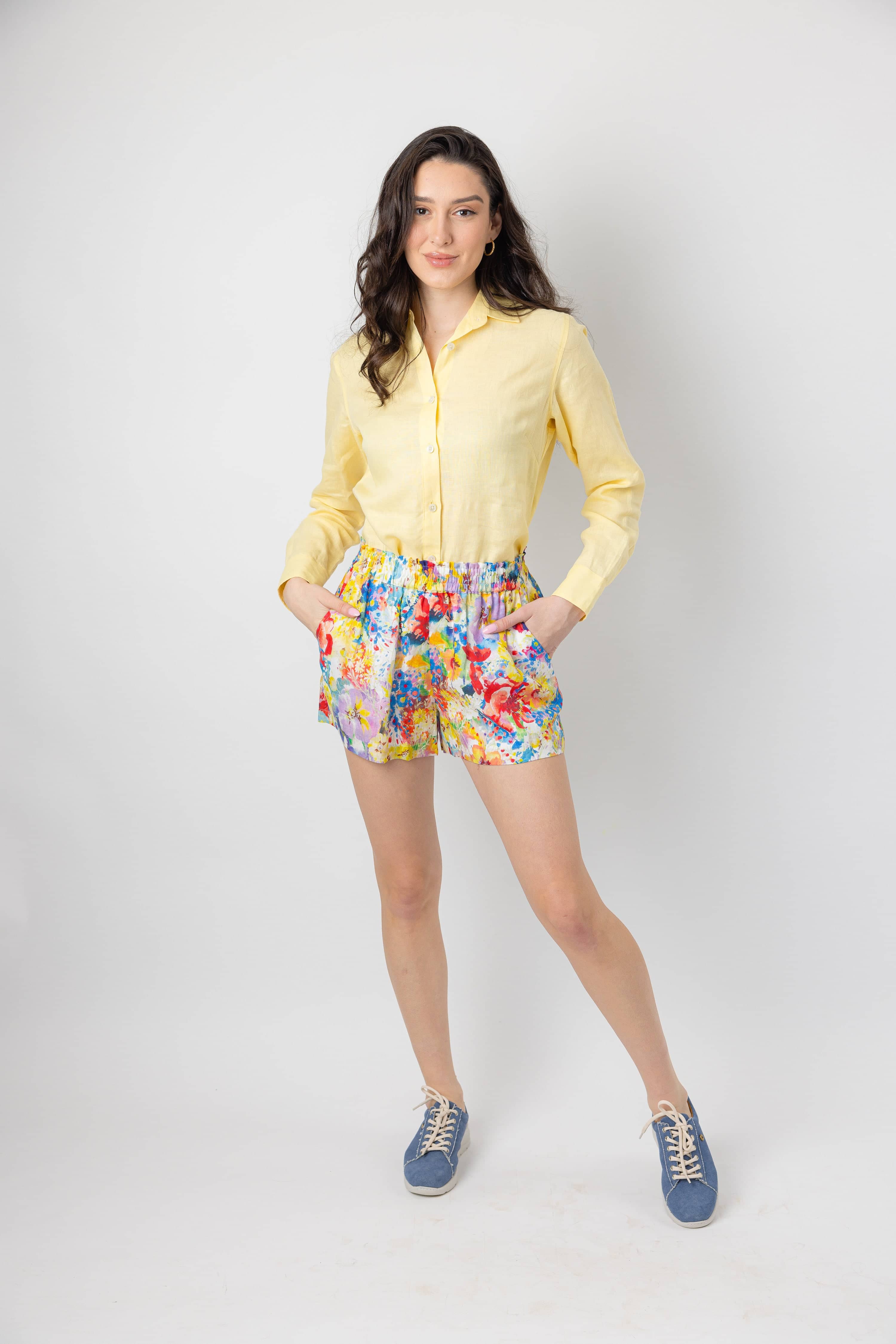 Featuring side pockets and a comfy cinched elastic waist, the Venice Linen Short is made from 100% European Linen in the USA. Pair it with a cute top and blazer for date night, a pair of our Cari Capri sneakers for picnics, or slip them on on your way to the beach!