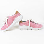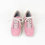 Our Pink Recycled Sneakers have an Eco Premium Ultra-Light outsole with great grip and shock absorption performance. The upper area of the shoe is made from recycled felt, and the soft gray royal suede lining allows the foot to breathe. These unique and eco-friendly women's running shoes are only available from Cari Capri.