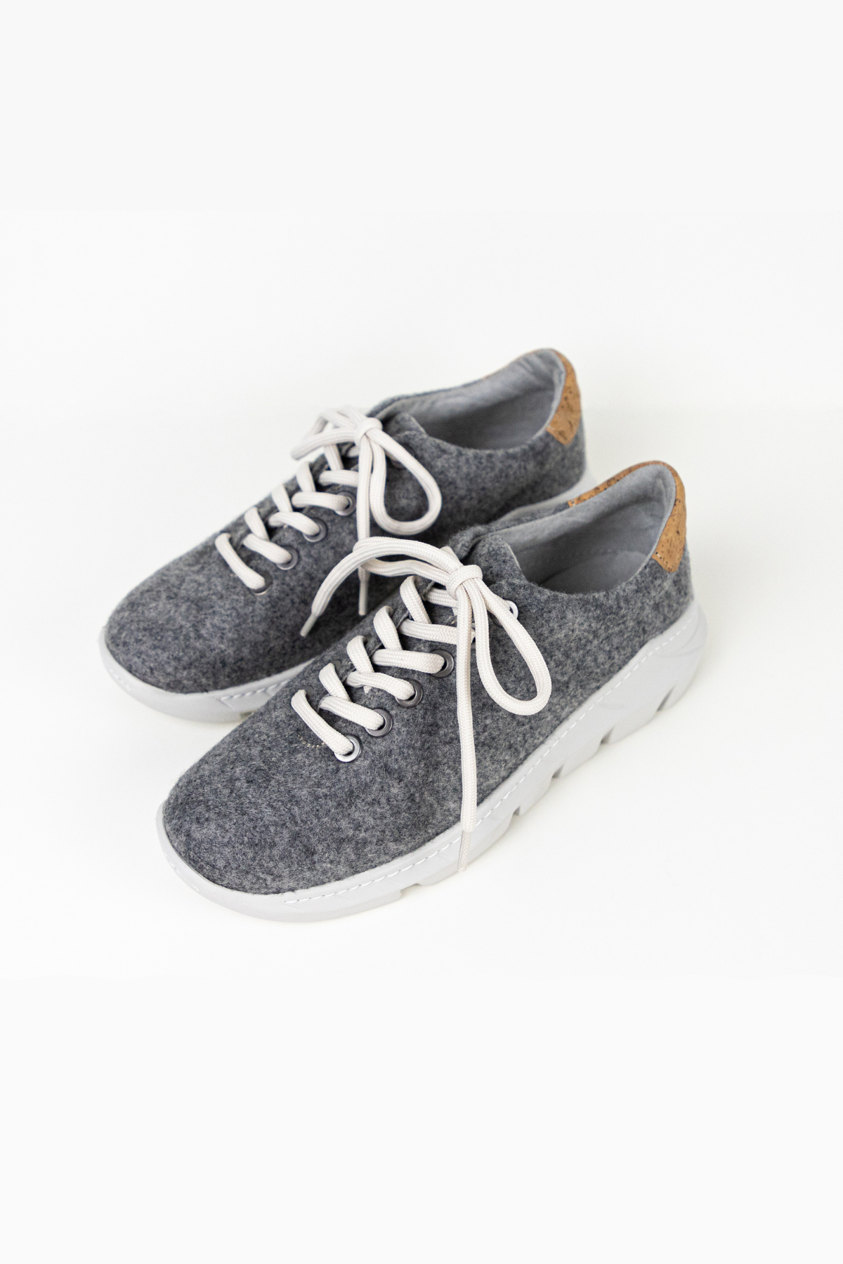 Our Gray Recycled Sneakers have an Eco Premium Ultra-Light outsole with great grip and shock absorption performance. The upper area of the shoe is made from recycled felt, and the soft gray royal suede lining allows the foot to breathe. These unique and eco-friendly women's running shoes are only available from Cari Capri.