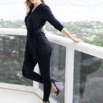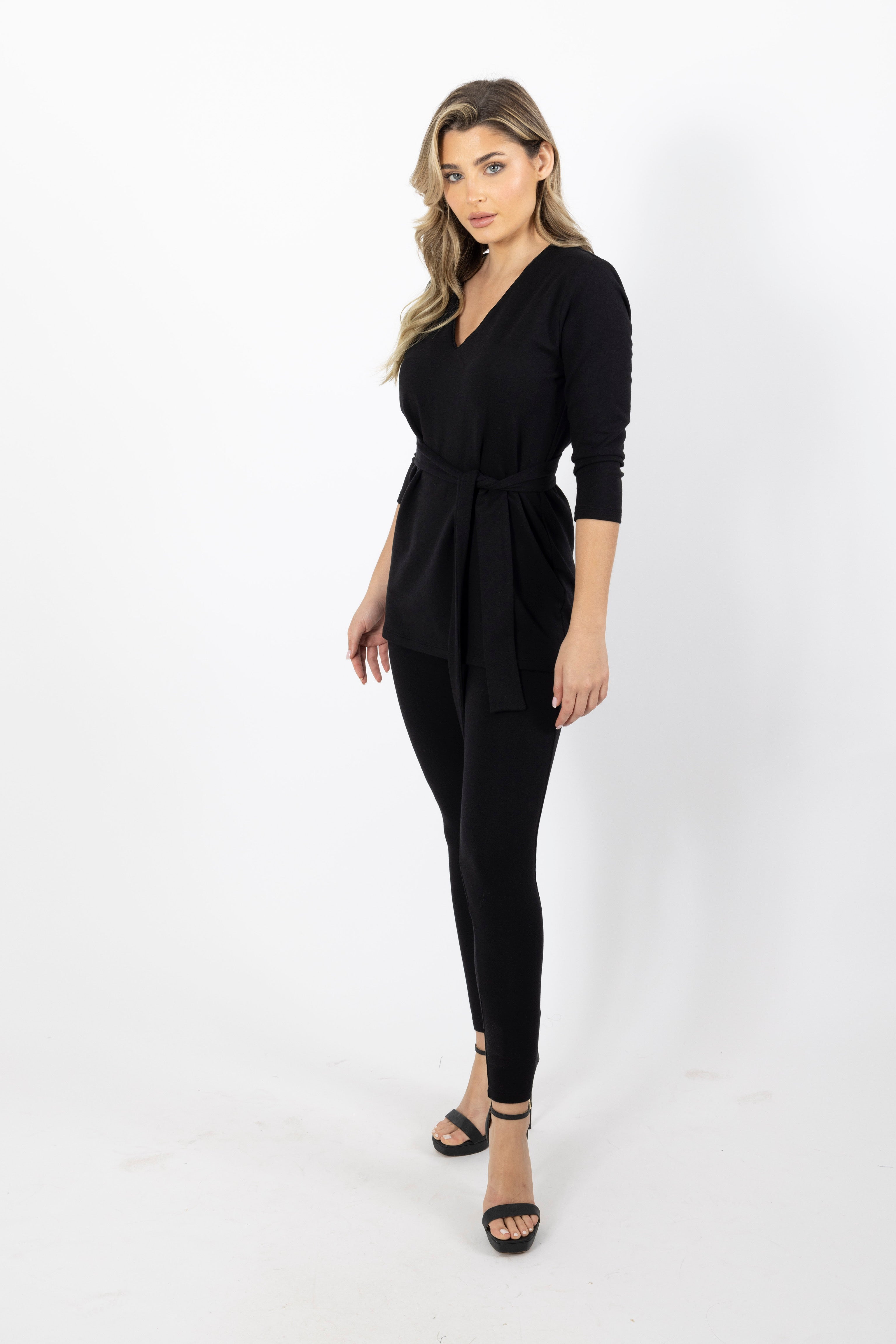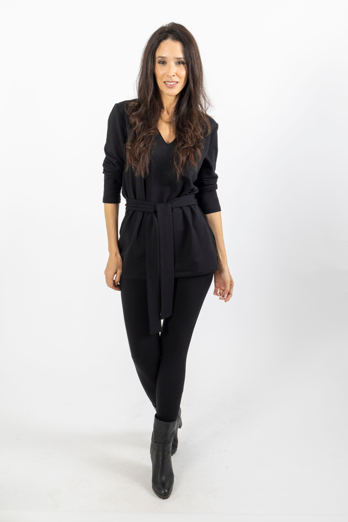 Our Travel Set is a functional outfit suited to meet the comfortable needs of all women. Set includes a trimmed v-neck top with removable belt and leggings. From school pick-ups to a night on the town, this versatile set offers a seamless transition from day to night. Look good, feel good with the softest organic TENCEL™ cotton. Ideal for sensitive skin.