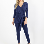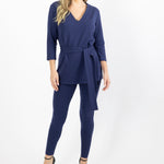 Our Travel Set is a functional outfit suited to meet the comfortable needs of all women. Set includes a trimmed v-neck top with removable belt and leggings. From school pick-ups to a night on the town, this versatile set offers a seamless transition from day to night. Look good, feel good with the softest organic TENCEL™ cotton. Ideal for sensitive skin.