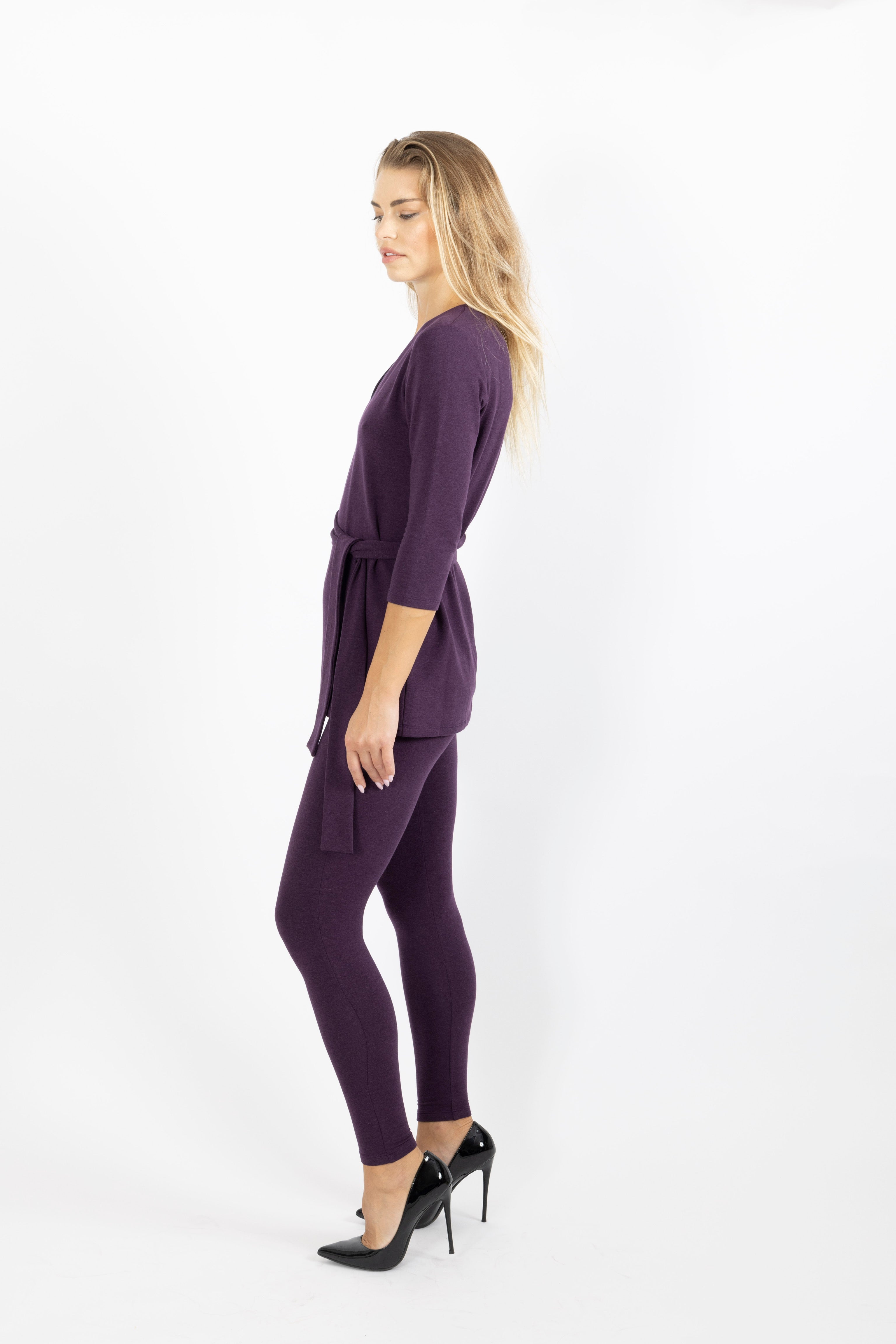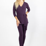Our Travel Set is a functional outfit suited to meet the comfortable needs of all women. Set includes a trimmed v-neck top with removable belt and leggings. From school pick-ups to a night on the town, this versatile set offers a seamless transition from day to night. Look good, feel good with the softest organic TENCEL™ cotton. Ideal for sensitive skin.