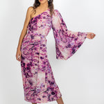 Step into a world of effortless elegance with the Bahamas Kaftan Dress by Cari Capri. This stunning dress features a one-shoulder styling with soft lines, a large and breezy single-sleeve design, and a sexy side leg slit. It is the epitome of lightweight luxury and a must-have for your next cruise or vacation getaway.